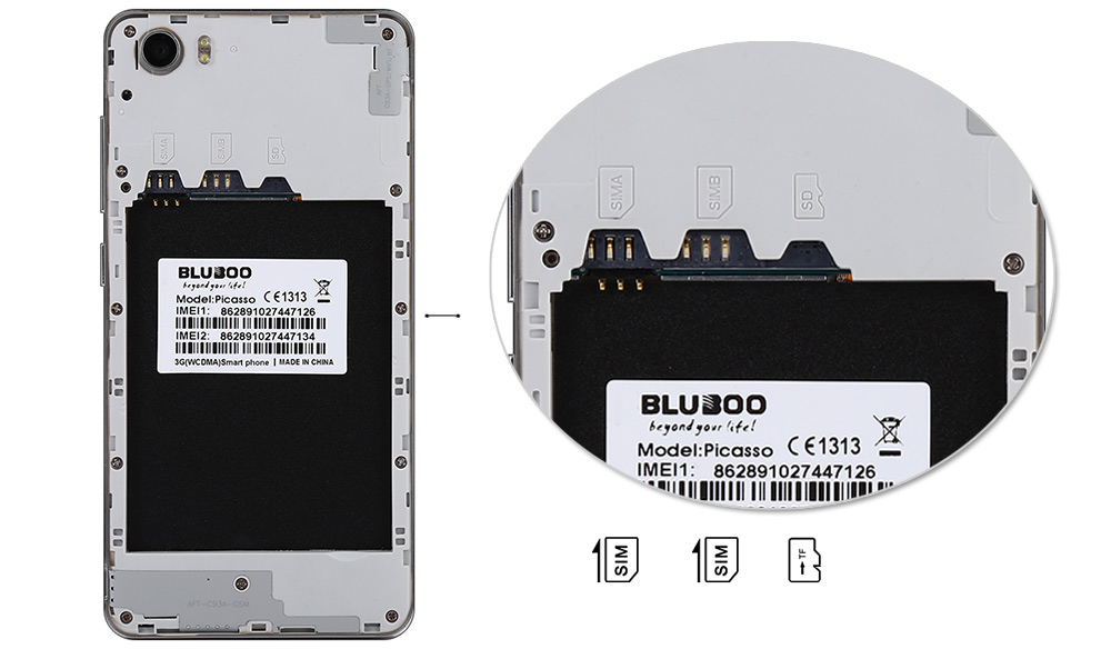 La gran diferencia entre el Bluboo Picasso y el XTouch es que el Picasso SI se puede abrir para por ejemplo cambiar la batería, no es un teléfono totalmente compacto, y como hemos comentado al comienzo de la entrada, es su hermano pequeño, por lo que sus características son un pelín menores, tenemos 2Gb de RAM, procesador MTK6580, de 4 núcleos a 1.3GHz, 16Gb de almacenamiento ROM, cámara trasera de 8Mpx y delantera de 5Mpx.