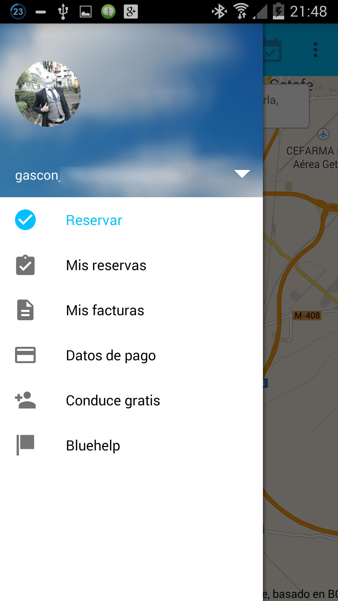 Seguido de esto, enviemos o no nuestra documentación, podremos ver nuestra posición en el mapa y los aparcamientos con coches Bluemove más cercanos y la cantidad de coches que hay en cada uno de ellos