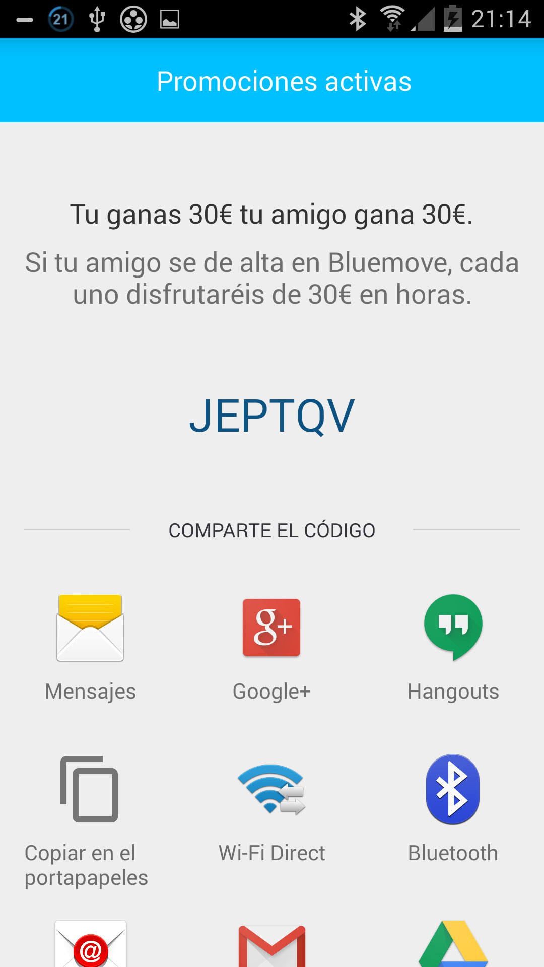 De todas ellas solo hablaremos de Conduce Gratis, ya que las demás parecen más o menos obvias; en «conduce gratis» podemos ver que con nuestro código y enviándoselo a nuestros amigos podremos conseguir hasta 30 €, nosotros y nuestros amigos el nuestro es «JEPTQV» usadlo para conseguir 30 € gratis en horas de alquiler.