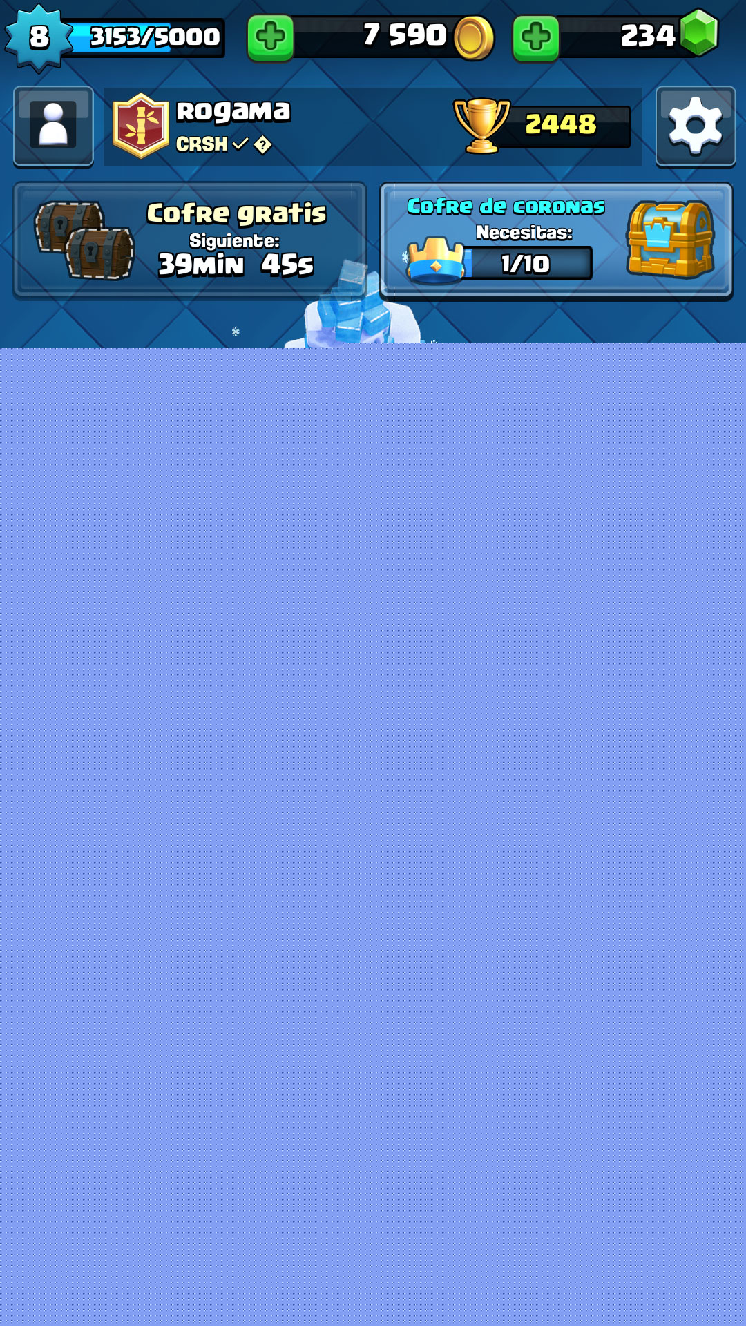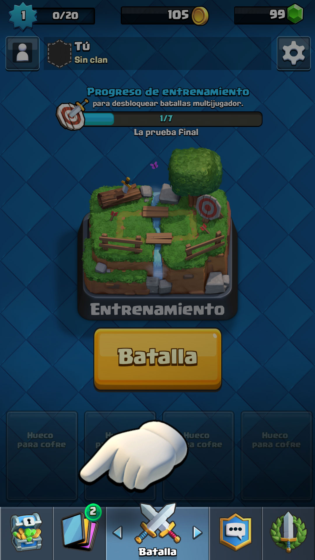 Después de cada partida llegaremos a la pantalla principal, en la que podremos ver el número de cofres que tenemos, desbloquearlos, y movernos por el menú. Al desbloquear un cofre recibiremos oro, cartas, y muchas veces gemas, el que recibiremos y la cantidad de los mismos dependerá del nivel de arena en el que estemos y del tipo de cofre.