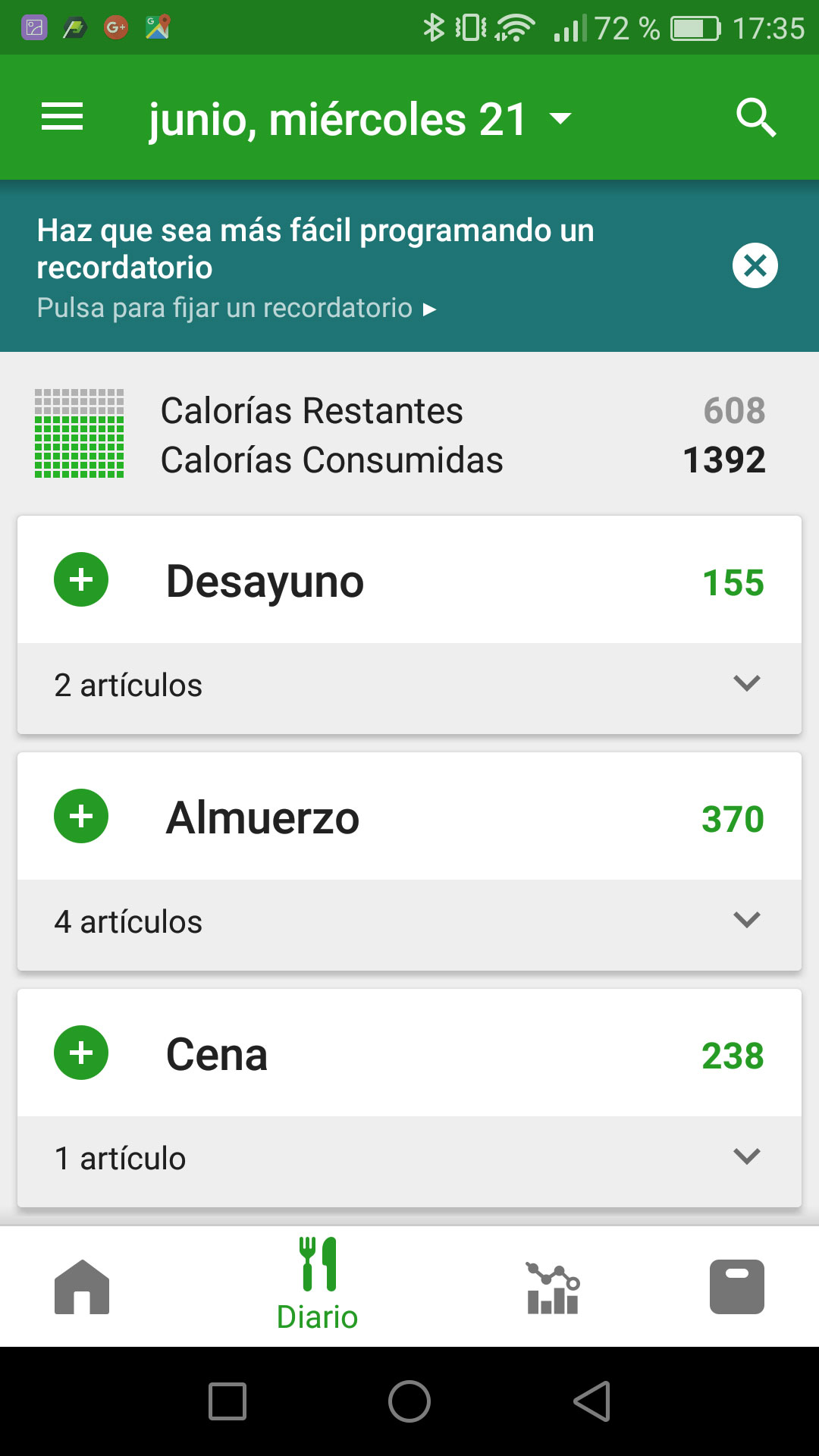 – Un Diario de Comidas para planear y hacer seguimiento a lo que está comiendo.
