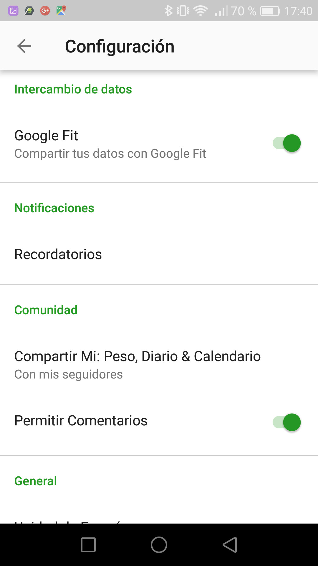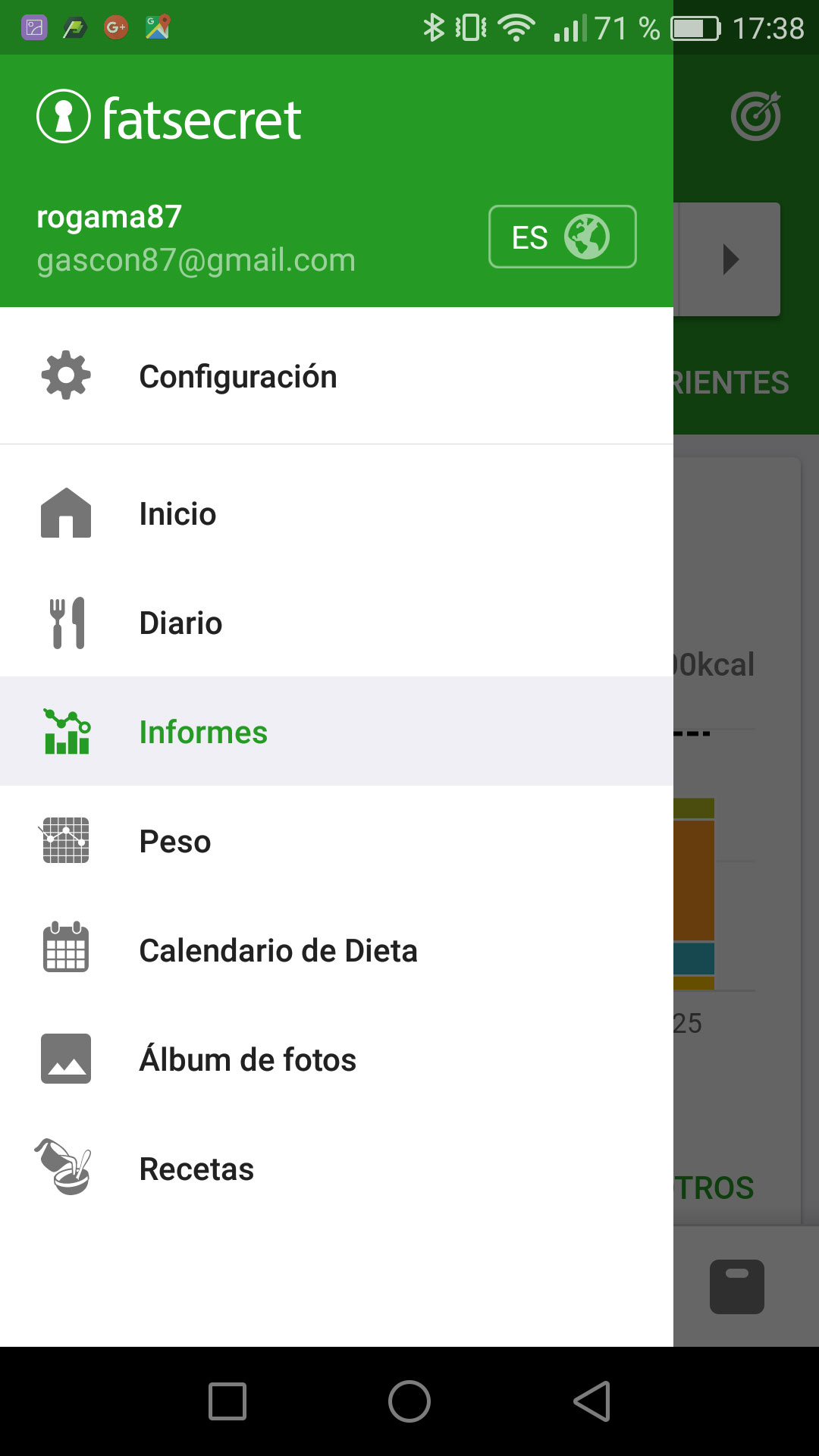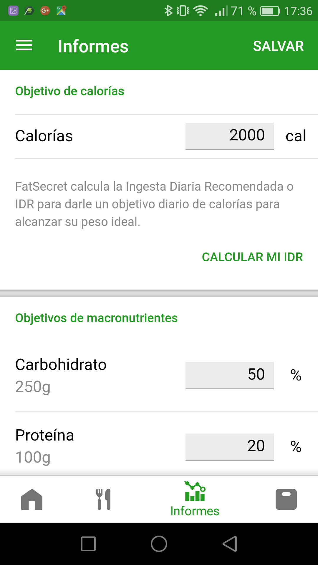 FatSecret Menu FatSecret Recetas FatSecret diario FatSecret calendario dieta FatSecret calcular calorías objetivo FatSecret calorías objetivo diarias FatSecret definir objetivos Fast Secret Configuración compartir googlefit