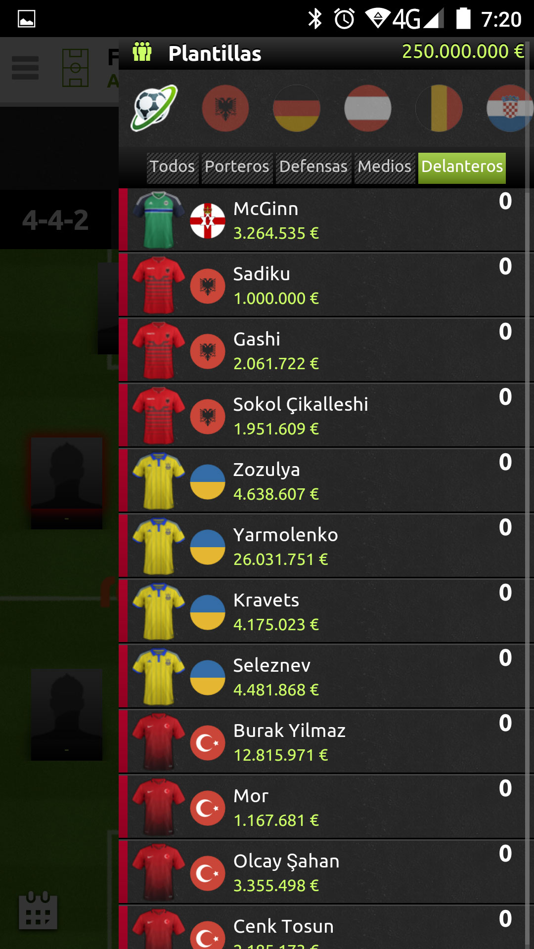 Para completar tu plantilla tienes algunos filtros útiles, como son las banderas de cada uno de los países, y la posición que ocupan los jugadores, pinchando sobre cualquiera de ellos solo veremos los seleccionados, y su precio, si queremos ver los jugadores de todas las nacionalidades deberemos pulsar sobre el logo de Futmondo