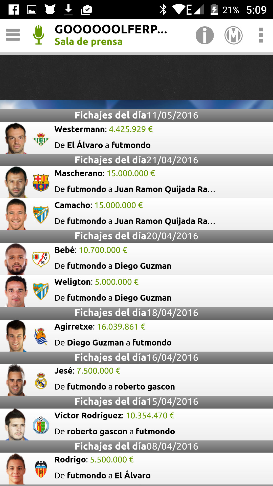 Por último tenemos la sala de prensa, en donde podemos ver quien ficha a que jugador, y por cuanto.