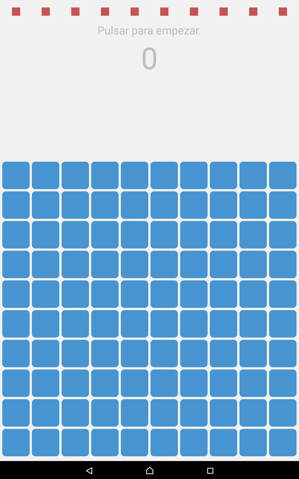 El modo clásico, el único que existía hasta hace unas semanas, en el que tendremos 100 cuadrados azules, y en la parte superior de nuestra pantalla 10 rojos mucho mas pequeños, desde estos cuadrados rojos saldrá otro, o se dejara caer, al azar otro cuadrado, es decir de cualquiera de los 10 superiores puede bajar otro hasta los cuadrados azules, deberemos parar este cuadrado rojo dentro de cualquiera de los azules, pero ojo, si pulsamos en la pantalla mientras el cuadro rojo esta fuera del azul perderemos, y tendremos que volver a empezar, además la velocidad de caída es variable, en unas ocasiones bajaran a toda velocidad, en otras despacio, cada cuadro va a su rollo, no va en aumento según los vas destruyendo.