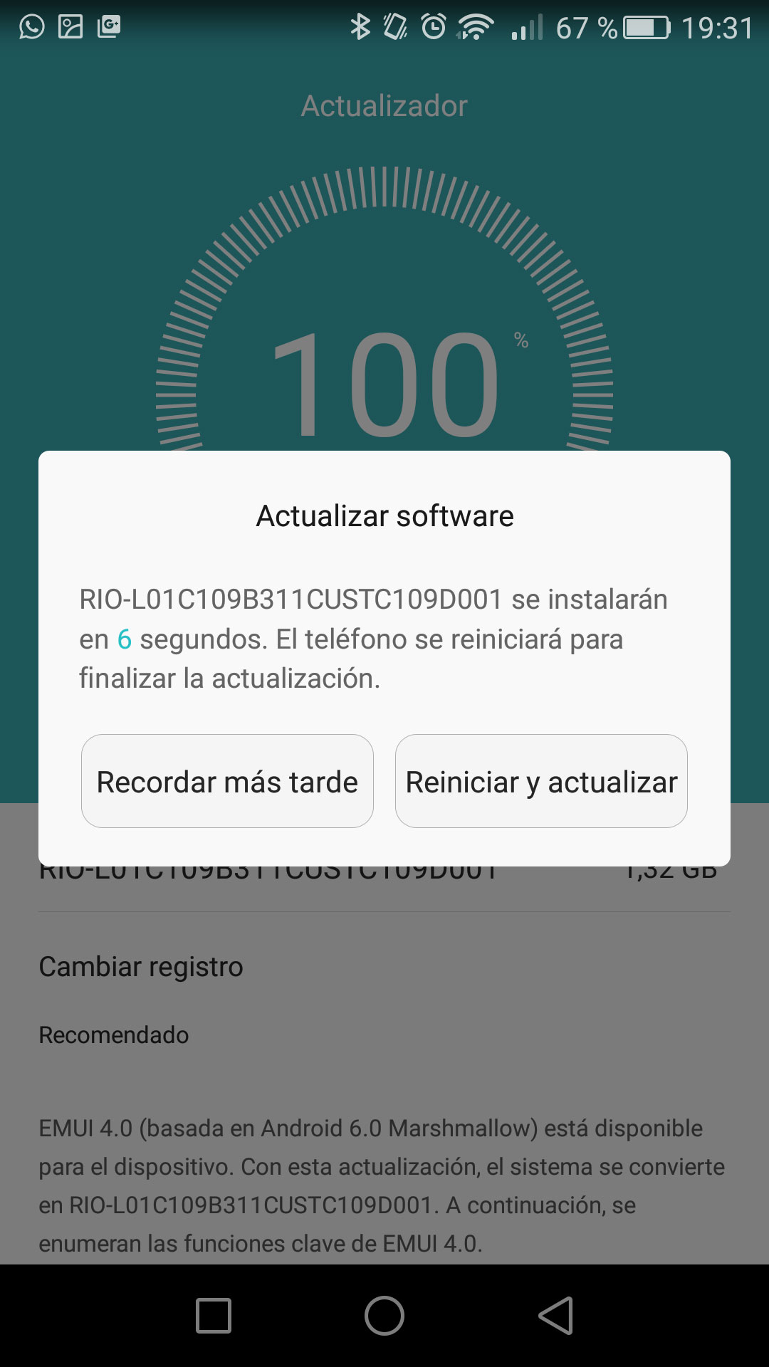 Nos saltara el aviso para llevar a cabo la actualización la cual nosotros ya realizamos ayer, y podemos deciros que es totalmente segura, tardo aproximadamente media hora, por lo que tener en cuenta que durante ese tiempo no podréis usar vuestro smartphone, una vez termine la actualización (la cual incluye 2 o 3 reinicios) podremos disfrutar de Android 6.0.1 en nuestro teléfono.
