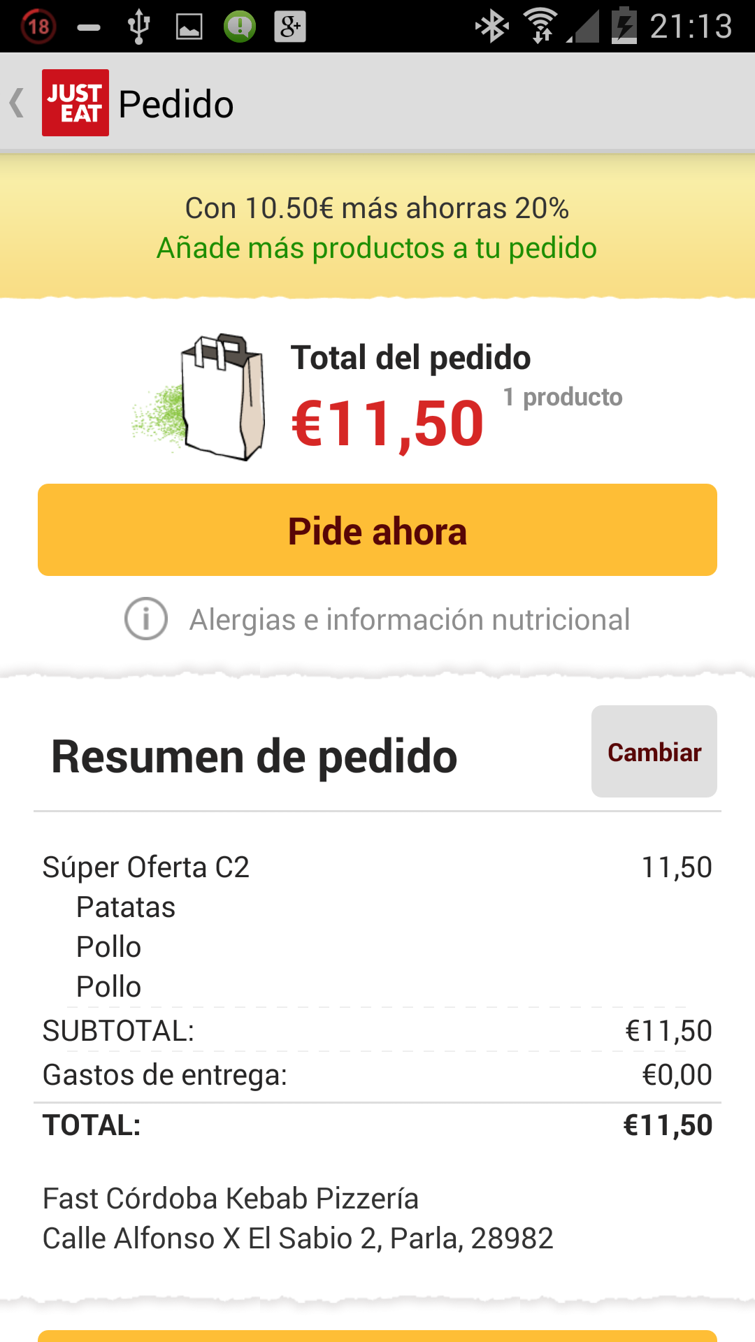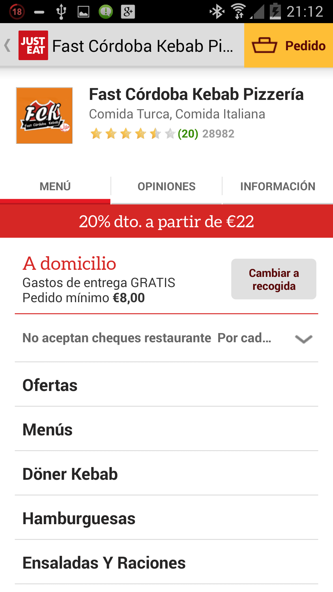 Puedes descargarla desde Just Eat para android