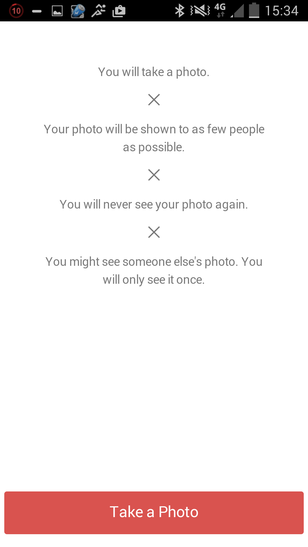 Por lo que podríamos decir que es una aplicación para compartir imágenes, su funcionamiento es muy sencillo, tu realizas una foto a algo que quieras compartir y ellos te envían una foto que halla realizado otro usuario con la misma intención