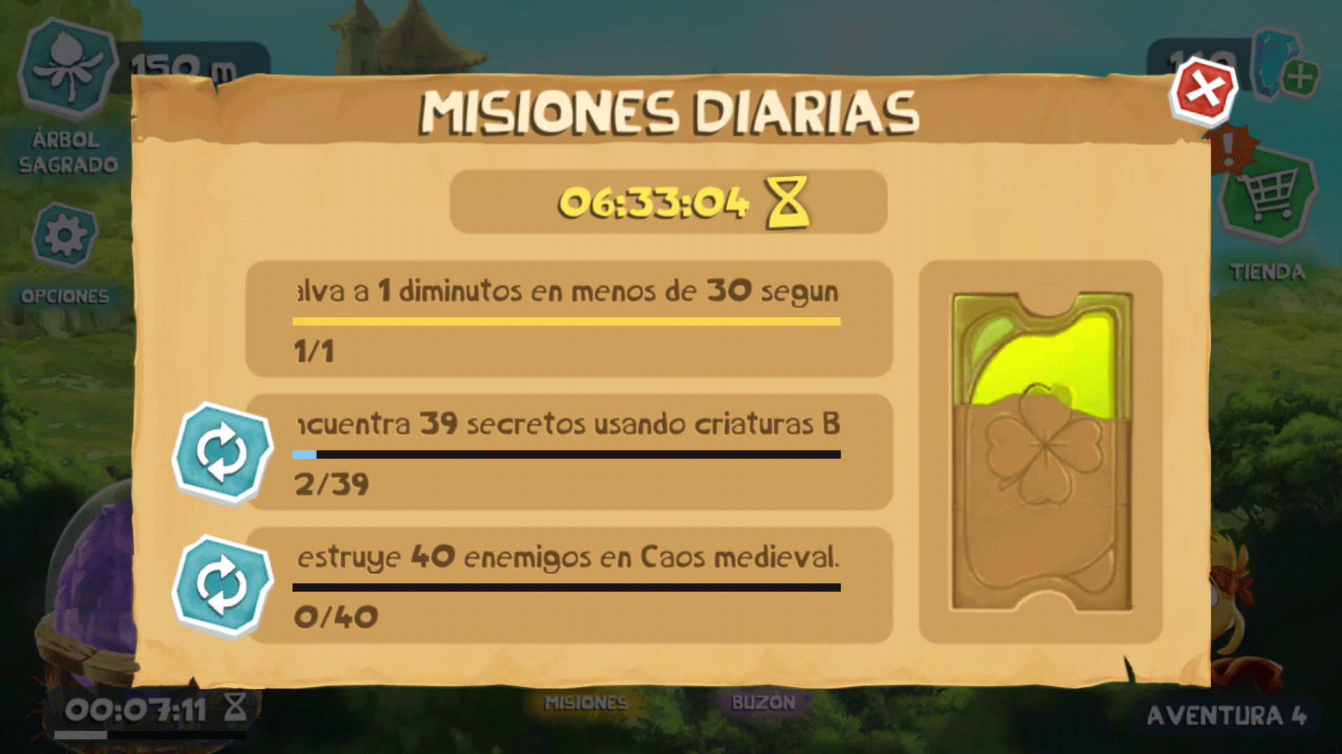 Como en la mayoría de juegos, tenemos las misiones y recompensas diarias y los logros.