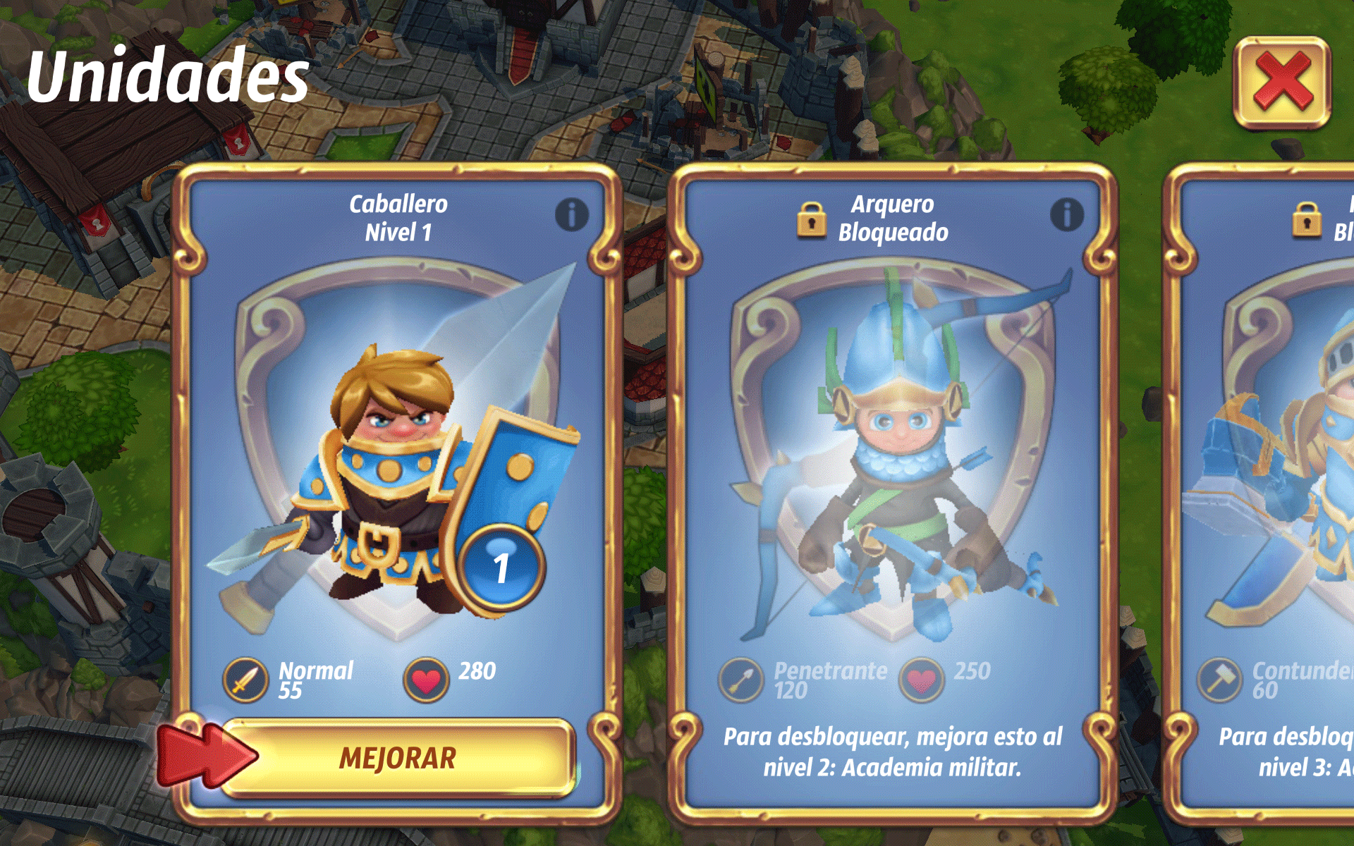Ahora, comenzaremos a edificar nuestro reino, empezaremos, construyendo la Academia Militar, aquí, podremos crear nuestras unidades y subirlas de nivel.