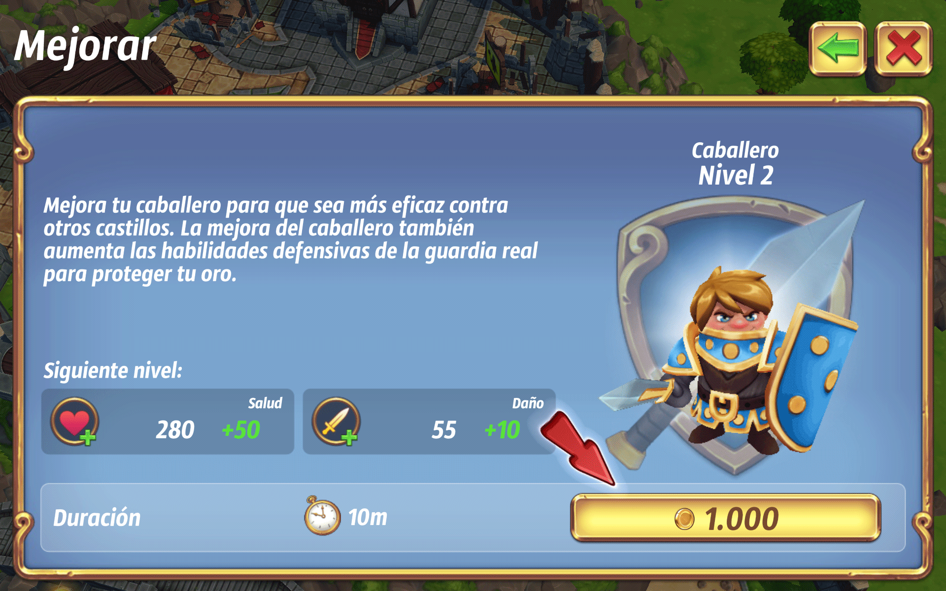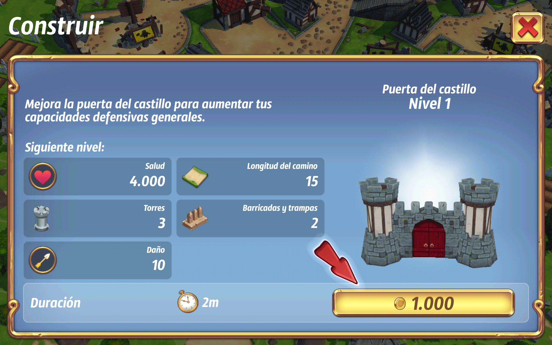 Para defender nuestro reino, construiremos nuestras defensas, lo primero, es edificar la Puerta del Castillo, podremos mejorarla, y así también, que nuestra defensa general sea mejor. desde la Puerta del Castillo, trazaremos un camino, que podremos alterar, para que sea más difícil llegar al castillo. A lo largo del camino, podemos poner torres de flechas, barricadas y trampas de pinchos.