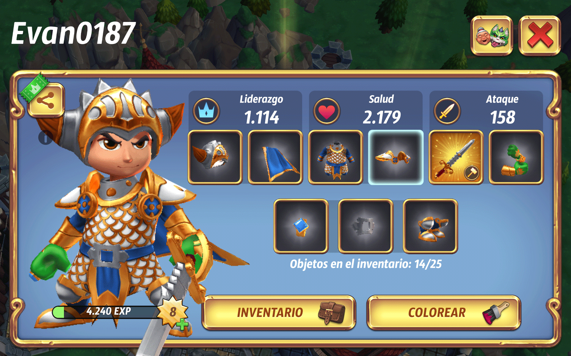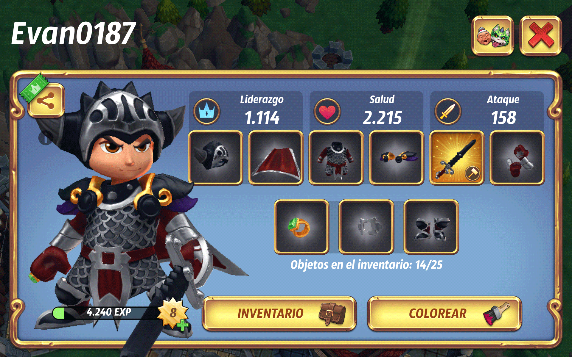 También podemos personalizar a nuestro Rey, adquiriendo nuevo equipo, y personalizándolo, hasta le podremos cambiar el color como más nos guste, hay muchas opciones.