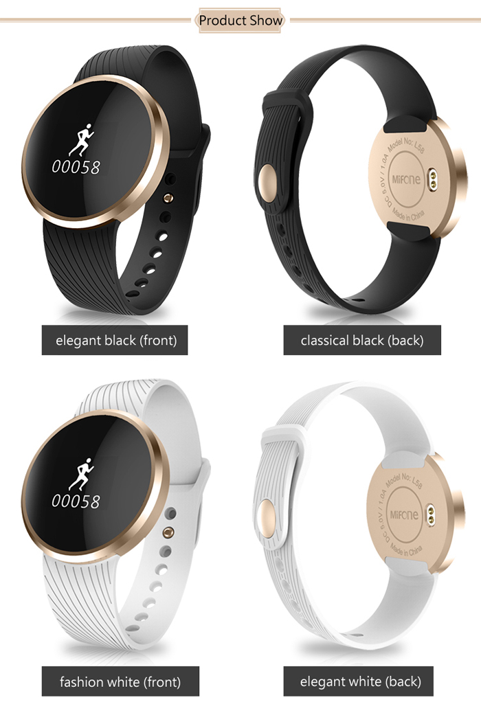 El MiFone L58 esta construido en aluminio, con correa de plástico en 2 colores a elección, blanco o negro, tiene certificación IP 67 por lo que es completamente sumergible hasta 1ATM, con una batería de 120mAh que promete hasta 1 mes de autonomía, compatible con cualquier teléfono que disponga de la conexión Bluetooth 4.0 o superior.