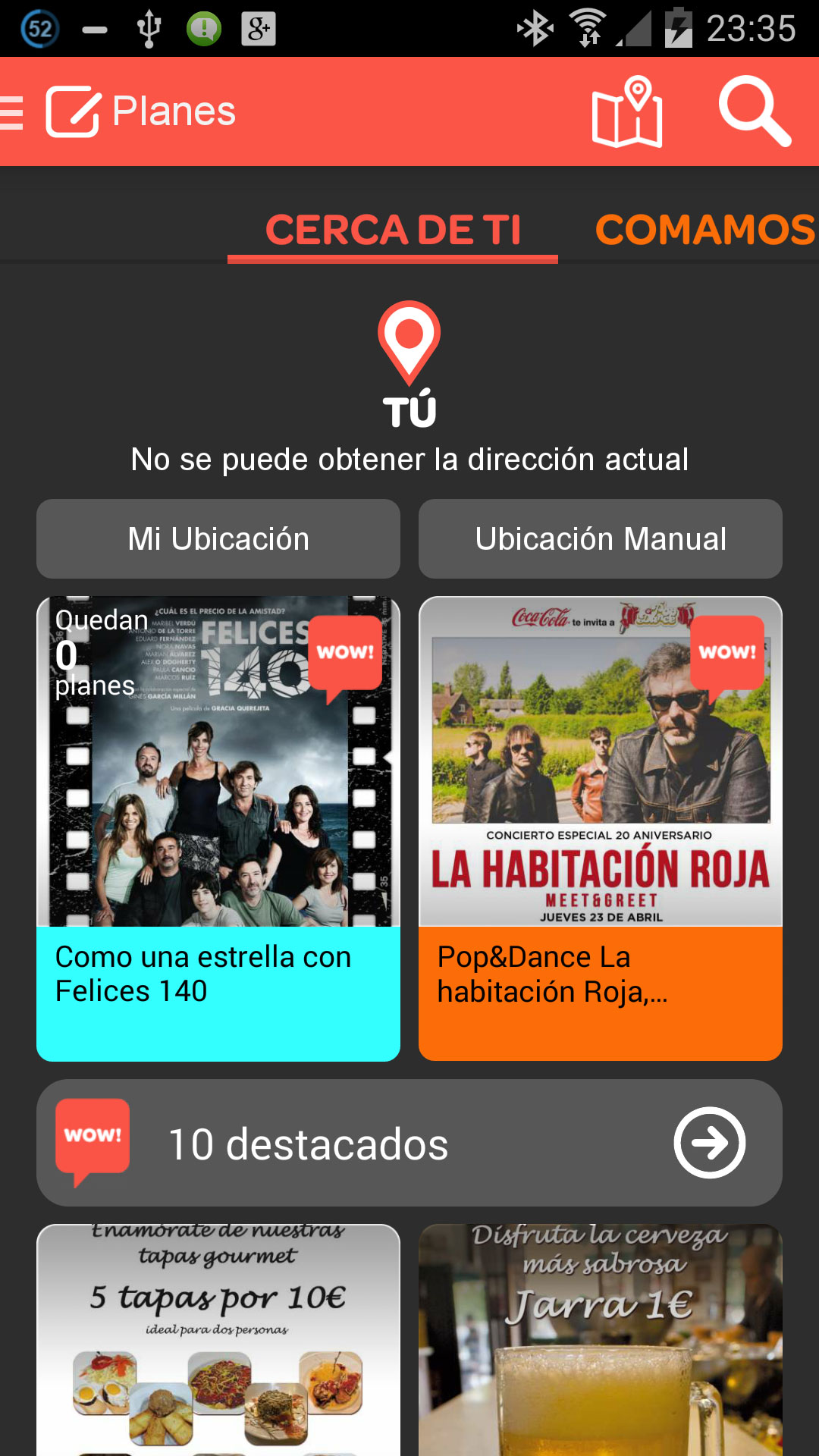 Y nos pedirá nuestra ubicación para mostrarnos los planes cercanos