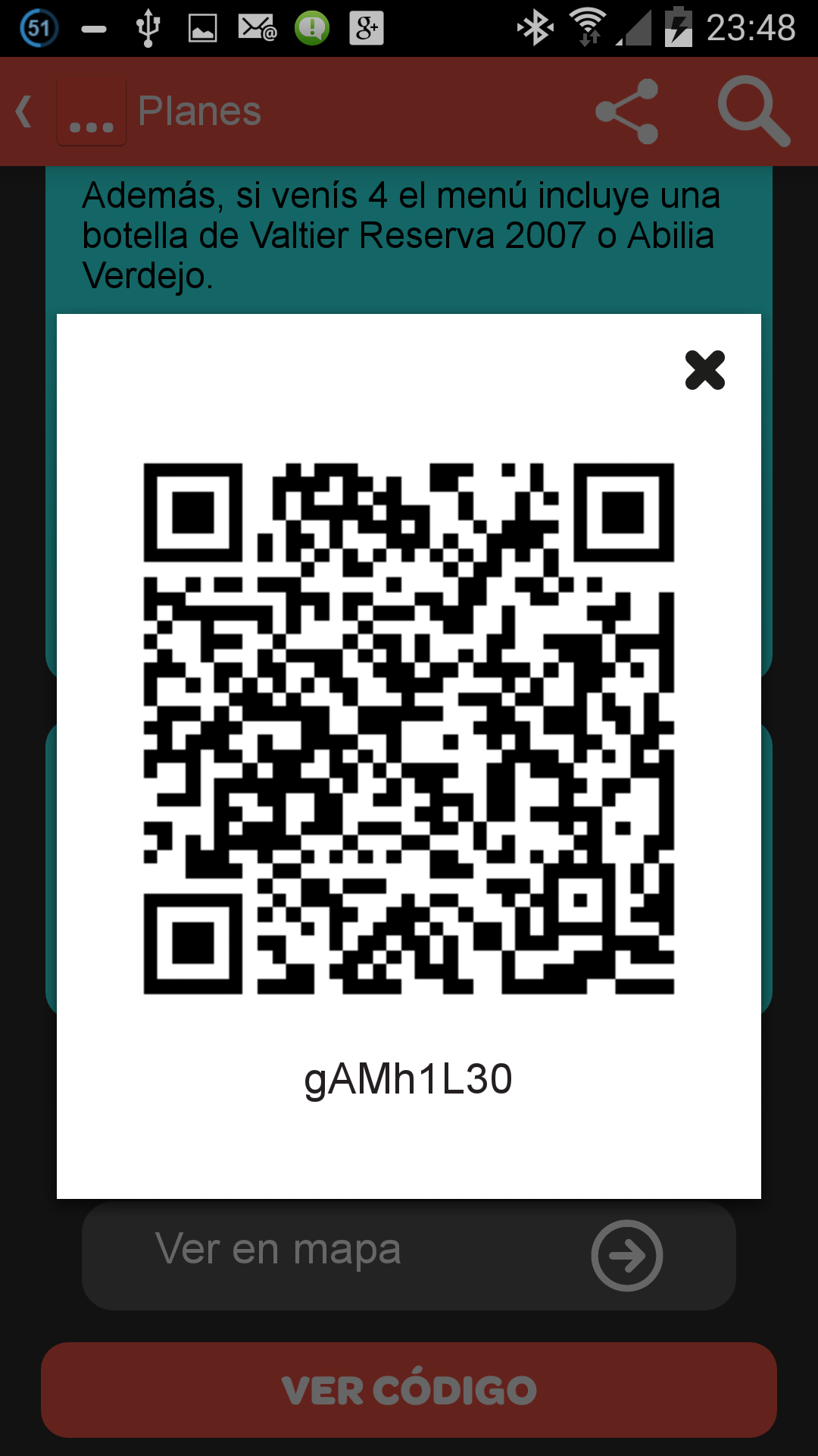 Una vez que nos apuntemos a un plan podremos recuperar el código QR desde nuestros planes, el cual enseñaremos en el local en cuestión para disfrutar del descuento.