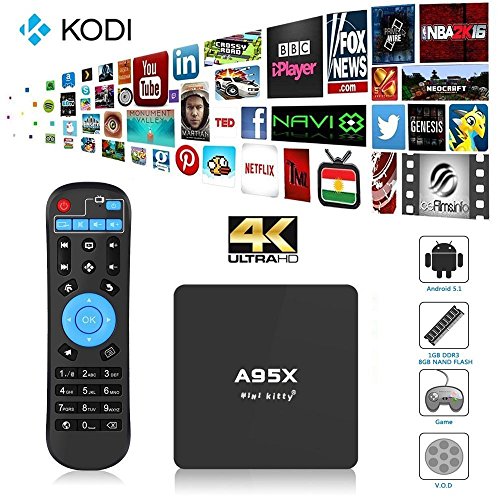 El mini kitty A95X, nos permite hacer todo eso, ademas de disfrutar de la que es casi última versión de Android, por que viene con Android 6.0, tiene un procesador de 4 núcleos Amlogic S905X de 2.0GHz, una GPU Mali-450MP de 5 núcleos, 1Gb de RAM y 8Gb de almacenamiento ROM, por supuesto trae WiFi para conectar a Internet, aunque si tenemos una toma de red cerca podemos conectarlo por cable, trae instaladas las aplicaciones de NetFlix, Kodi, y otras de entretenimiento.